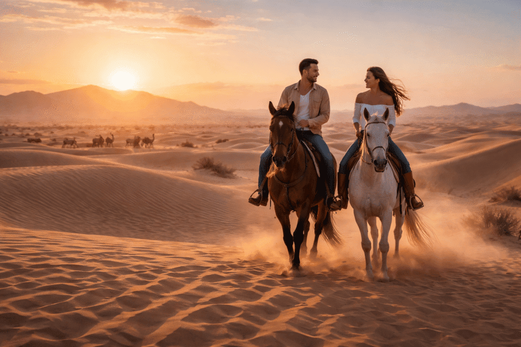 Experience a unique beach horse riding adventure near Dubai with our private guided tours in Umm Al Quwain. Ride a beautiful Arabian horse along the peaceful coastline and enjoy breathtaking views during sunrise or sunset. This experience is perfect for beginners and experienced riders looking for a memorable outdoor activity near Dubai.